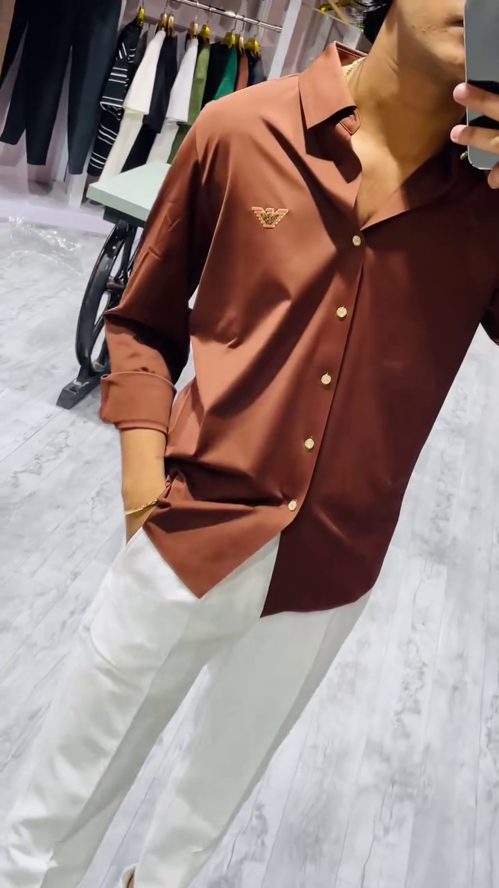 + Free ShippingBrown solid opaque Casual shirt ,has a spread collar, button placket, long regular sleeves, straight hem