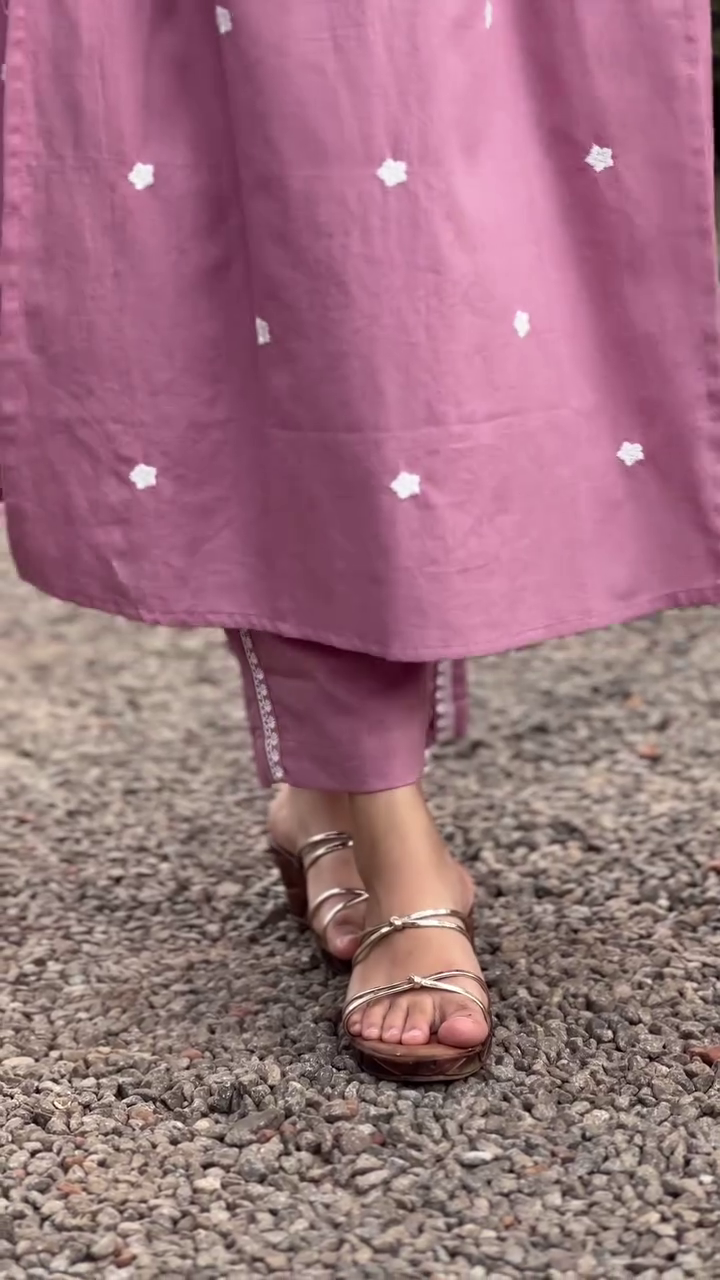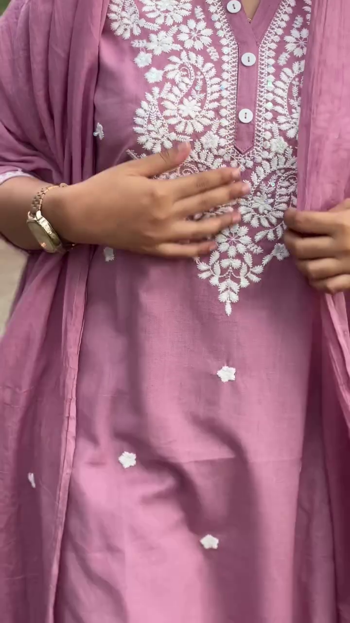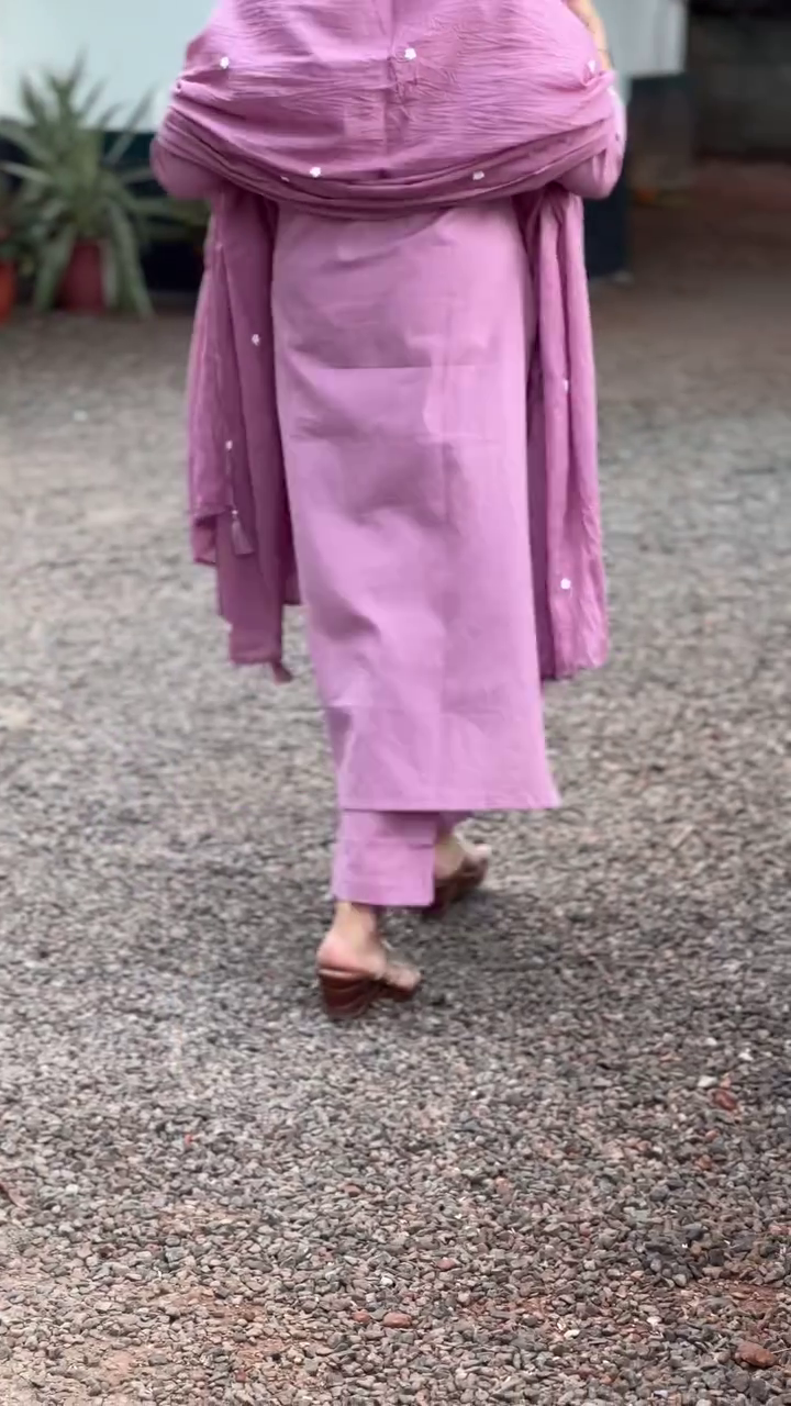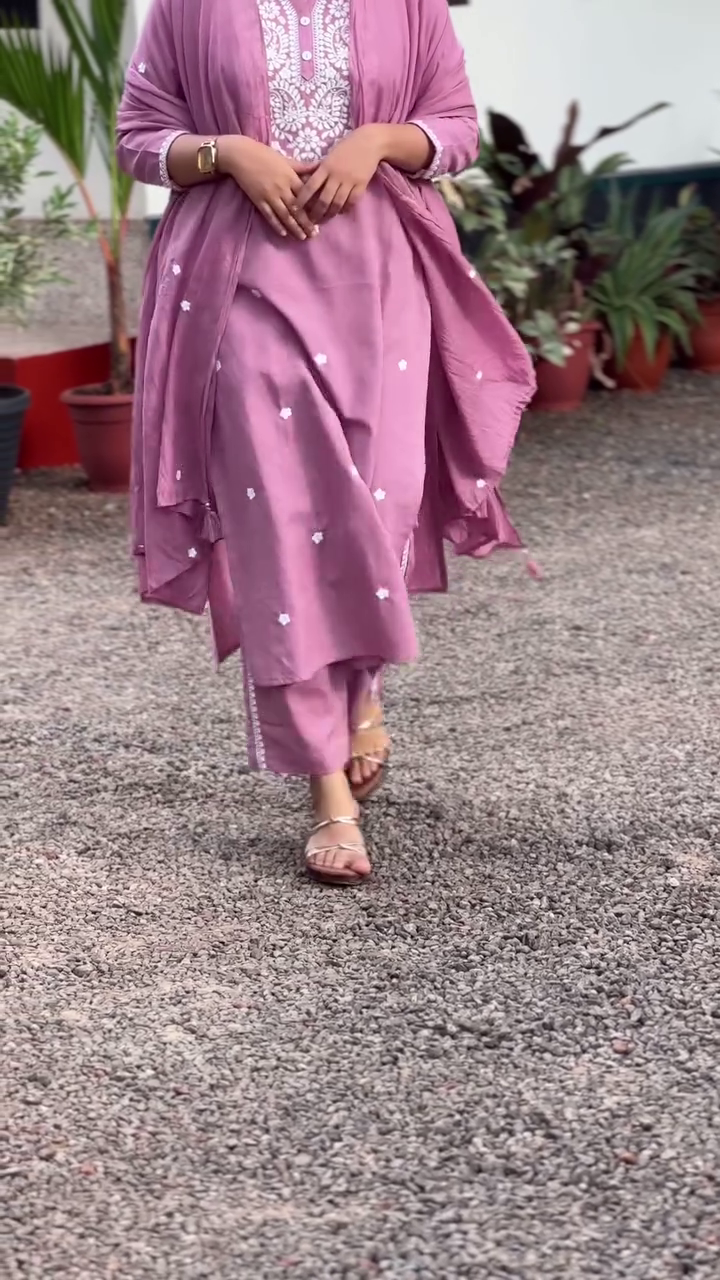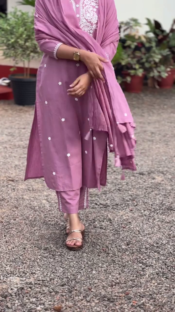 Purple and white embroidered kurta with trousers & dupatta
