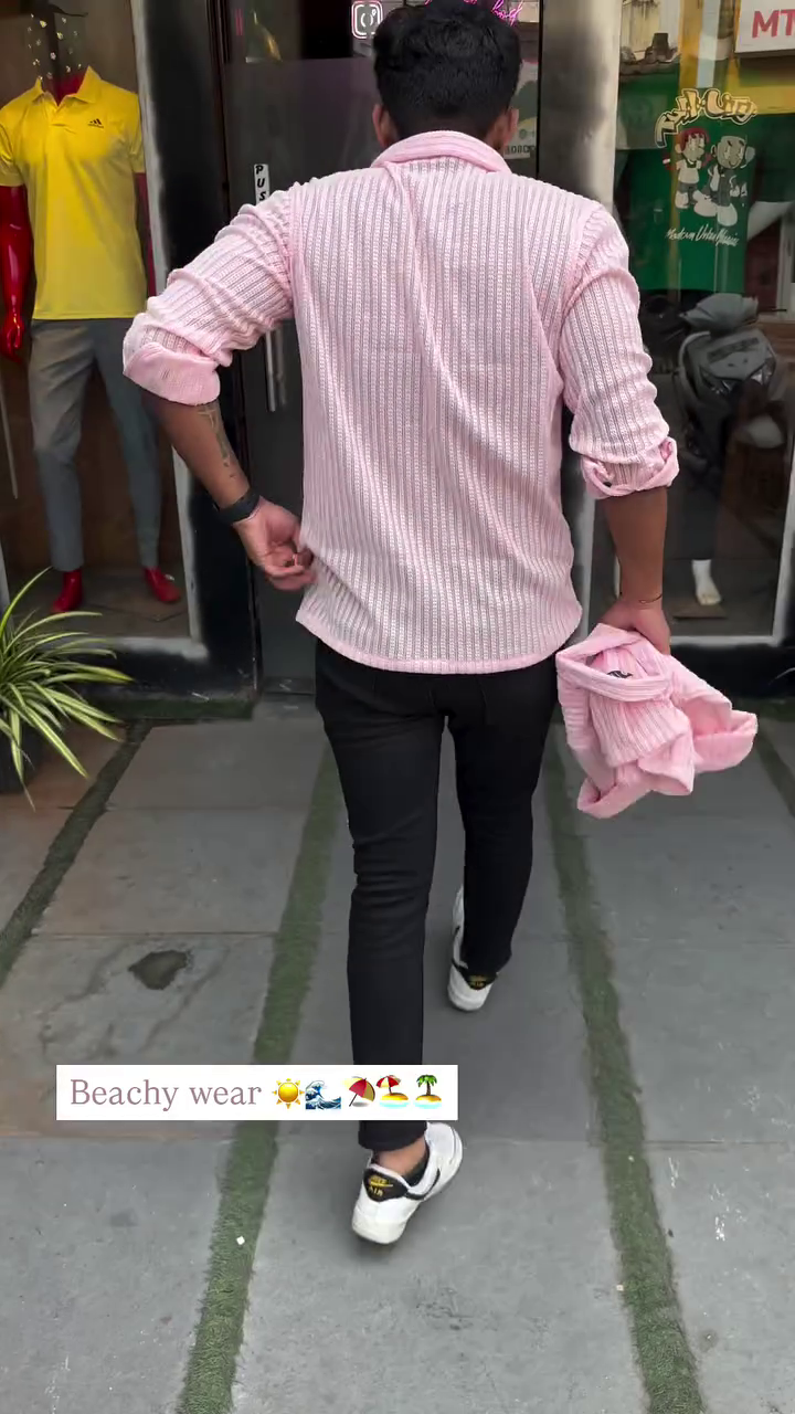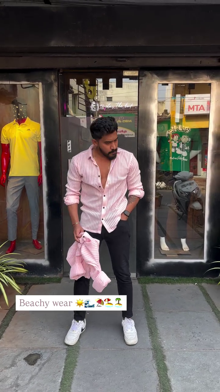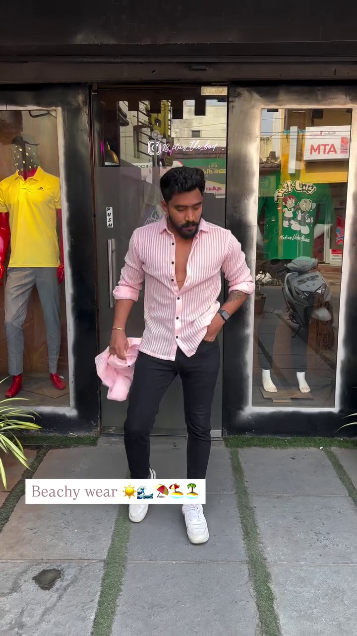 + Free ShippingPink vertical stripes striped opaque Casual shirt ,has a spread collar, button placket, 1 patch pocket, long roll-up sleeves, curved hem