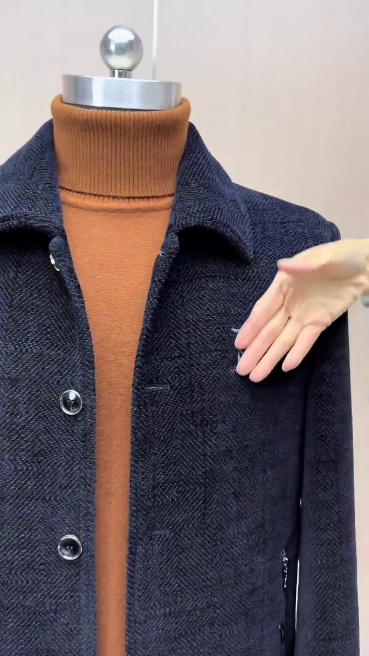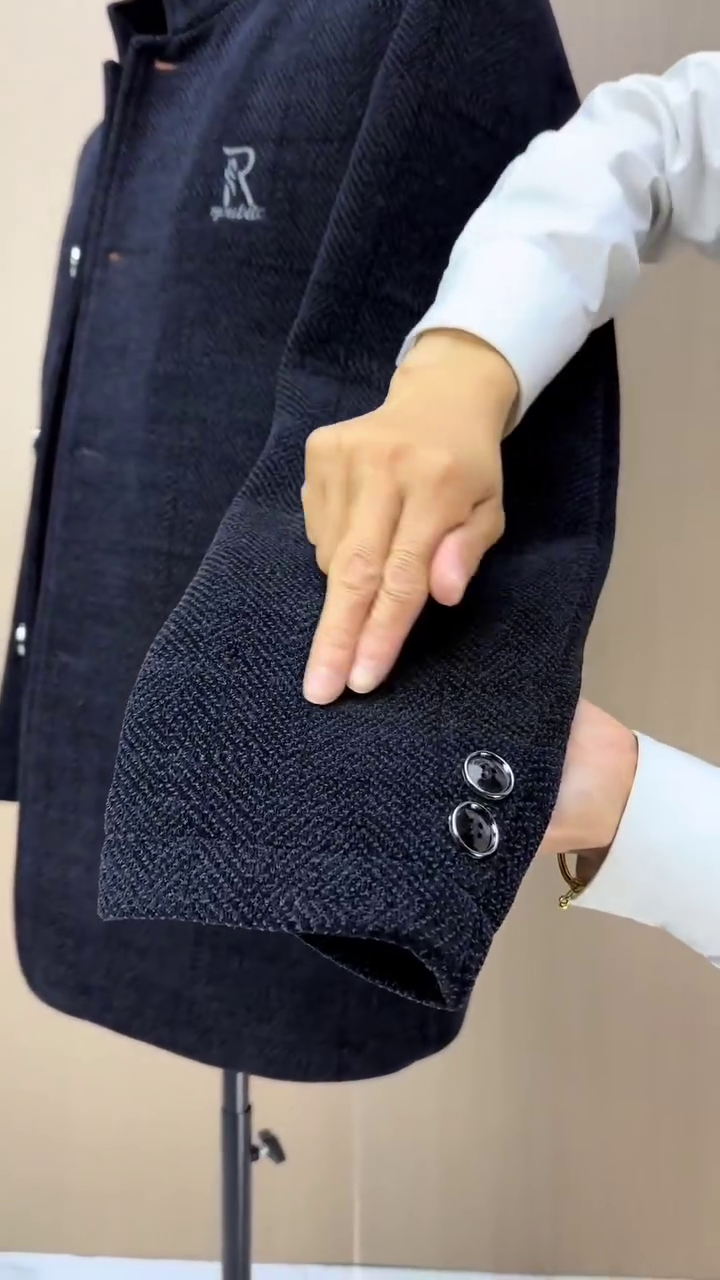 • Design: A single-breasted design with a structured, traditional lapel collar, providing a timeless, polished silhouette.